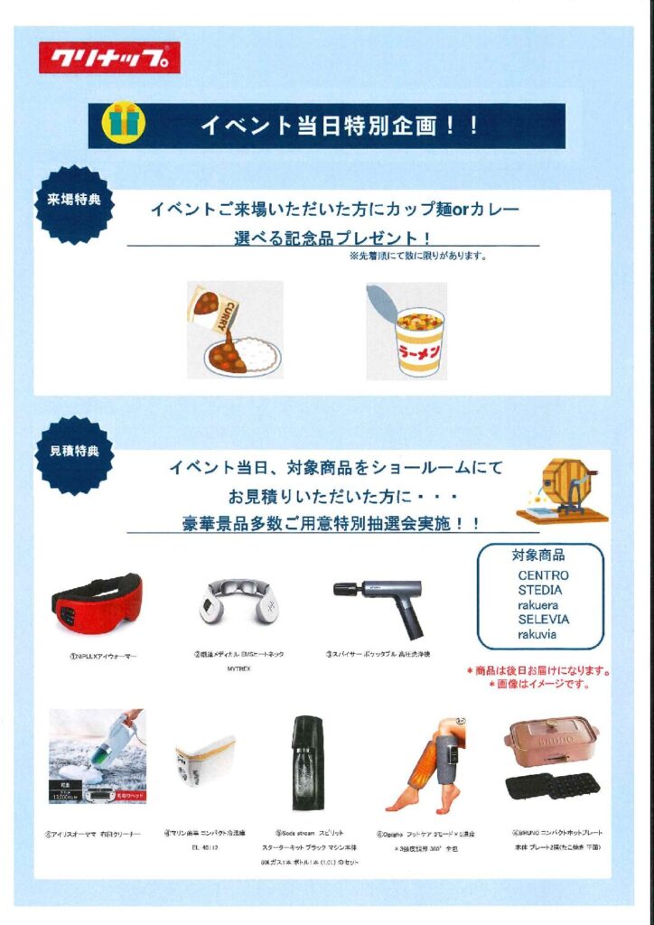 イベント当日に対象商品をショールームで見積りした方に豪華景品が当たる特別抽選会もやってるよー。